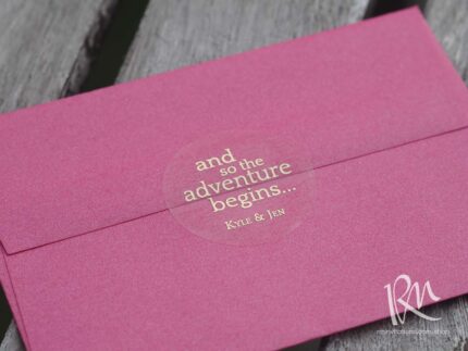 Our foil labels are the perfect touch to add to your invitation envelopes or favours. These come in 1.5″ or 2″ circles – perfect for an envelope seal or as a alternative to a tag on a  wedding favour. These are entirely customizable.